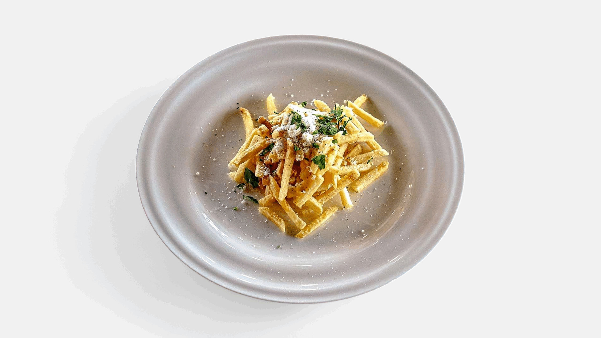 ingrediente: cartofi pai, grana padano, patrunjel, mujdei