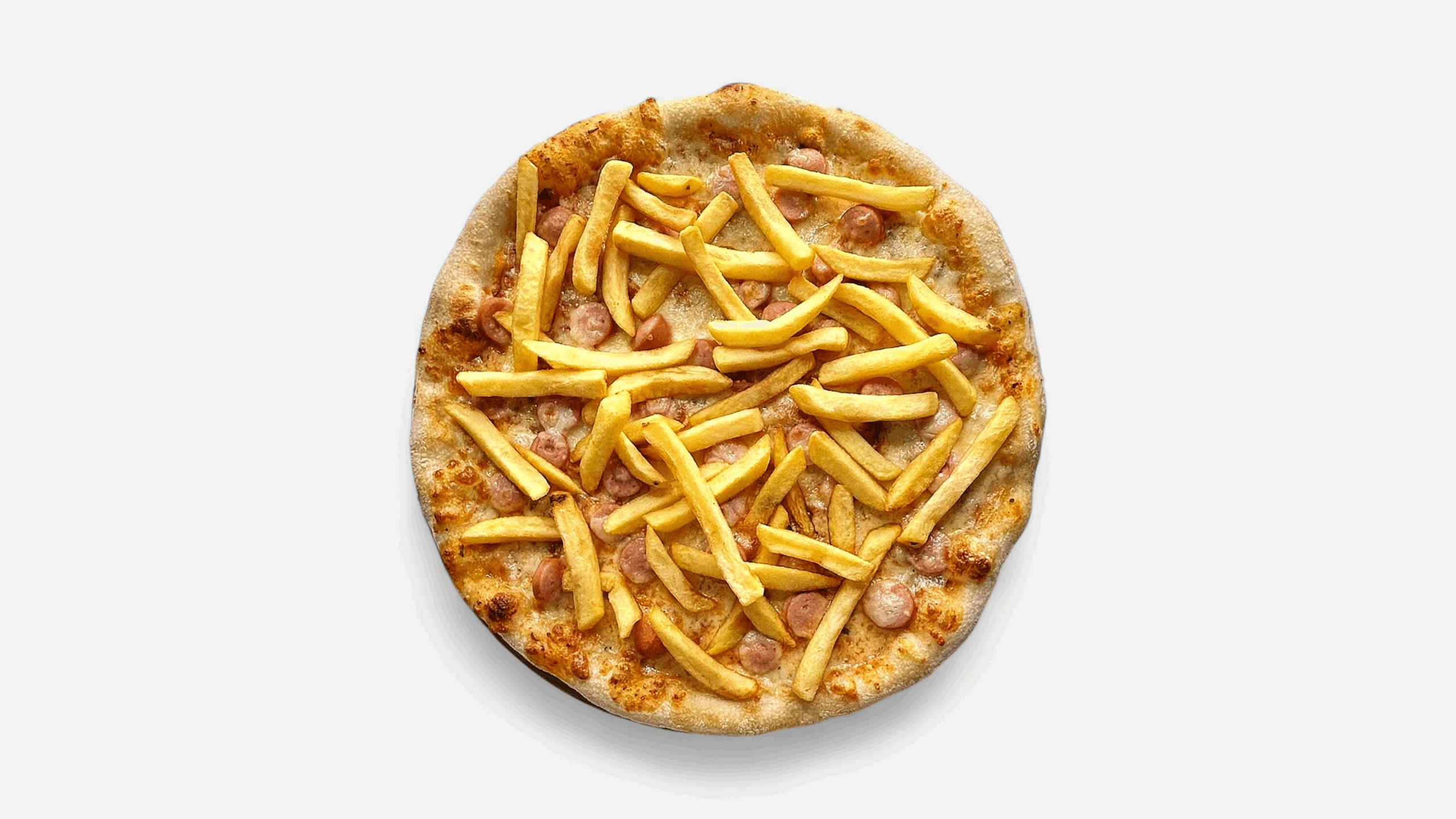 blat, sos pizza, mozzarella, crenwusti, cartofi pai