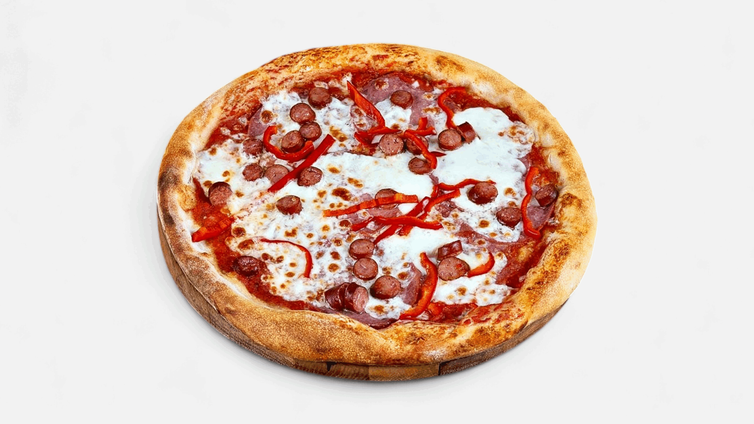 INGREDIENTE: blat, sos pizza, mozzarela, cabanos, salam milano, ardei gras