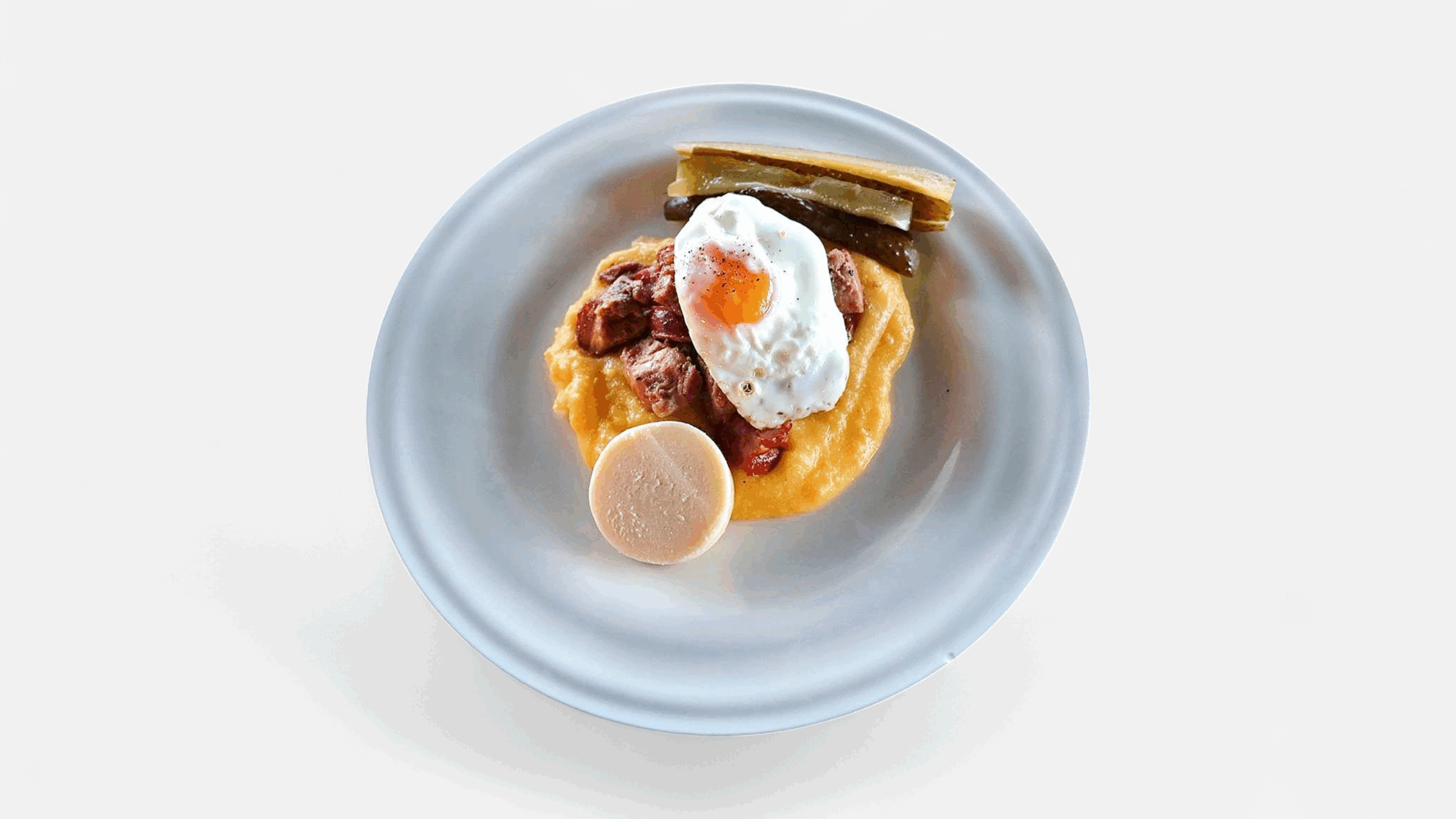 INGREDIENTE: carne porc, cârnați groși afumați, kaizer, cimbru, usturoi, vin alb demisec, sare, piper negru, foi dafin, mămăligă, ou ochi, brânza de burduf, murături asortate